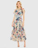 Multicolor Floral Chiffon High Neck Flutter Sleeve Dress