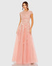 Pink High Neck Cap Sleeve Embellished A Line Gown