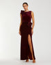 Dark Red High Neck Velvet Column Gown With 3D Flowers