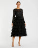 Black Long Sleeve Ruffle Tiered Midi Dress