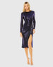 Purple Long Sleeve Knot Detail Slit Metallic Dress