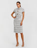 White Fitted Boucle Short Sleeve Button Up Midi Dress