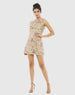 Pink Sequined Floral Detail Sleeveless Mini Dress