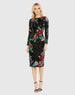 Black Embellished High Neck Cascading Floral Dress