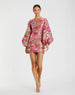Pink Floral Brocade Balloon Sleeve Mini Dress