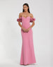 Pink Crepe Off The Shoulder Gown With 3D Flowers