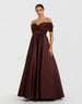 Burgundy Satin Off The Shoulder Twist Evening Ball Gown