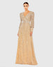 Beige Sequined Wrap Over Bishop Sleeve Gown