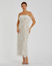 Elegant lace fabric dress featuring a strapless neckline and sleeveless design, offering a chic and timeless look. The feather-embellished neckline adds a luxurious touch, while the back vent provides ease of movement. Perfect for formal events, evening parties, or special occasions, this dress combines delicate craftsmanship with modern sophistication.