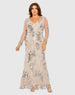 Beige V Neck Mesh Long Sleeve Embroidered Gown