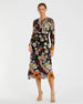 This multicolor A-line midi dress is adorned with vibrant floral embroidery and hand-stitched appliqué, creating a timeless silhouette perfect for day and evening events.