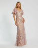 Pink Embellished Lace V Neck Butterfly Sleeve Gown