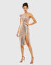 Pink Sequined Flutter One Shoulder Fitted Midi Dress
