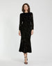 Turn heads in this little black midi dress, crafted from luxurious burnout velvet. With long sleeves and a graceful silhouette, it’s elegant yet versatile; perfect for fall cocktail parties, dinners, and evening gatherings.