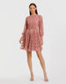 Pink Ruffle Lace Up Back Long Sleeve Mini Dress