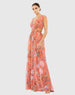 Floral-printed gown featuring a v-neckline and side and back cut-outs.