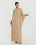 This stunning Beige Floral Embellished Gown features a flattering boat neckline and elegant kaftan silhouette. The intricate 3D embellishments add a touch of sophistication to this versatile piece. Perfect for any occasion, this dress will make you feel confident and stylish.