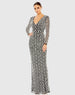 Black Fully Beaded Long Sleeve Column Gown