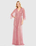 Crafted with a delicate net fabric, this gown exudes elegance. Featuring a V-neck and kimono sleeves, it sets the stage for an effortlessly sophisticated look. The sequin detailing adds a touch of sparkle, making it a perfect choice for any special occasion.