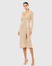 This long sleeve sequined midi dress features a faux wrap bodice, a flattering V-neckline, and a draped midi-length skirt with a daring front slit. Perfect for a night out or special event, it combines glamour with effortless style.