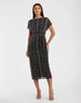 Black Beaded Cap Sleeve Empire Waist Sheath Midi Dress