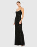 Stunning fully-beaded column gown accented with a rhinestone-encrusted scoop neckline and subtle back slit.
