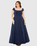 This elegant ball gown features a flattering square neckline and short sleeves, made with crepe fabric for a luxurious feel. This dress is perfect for any formal occasion.