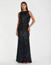 This elegant evening gown features a timeless boat neckline and a flattering trumpet silhouette. The stunning open cowl back adds a touch of glamour and sophistication to your overall look. Perfect for any formal occasion, this gown exudes timeless beauty and style.