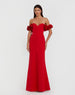 Make an entrance with this pretty formal gown. The off-the-shoulder petal detail adds a touch of femininity and sophistication. Perfect for a formal event or special occasion.