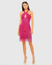 Cross Front Keyhole Top Beaded Fringe Mini Dress