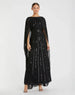 The Embellished Column Cape Gown by Mac Duggal offers a stunning, fully lined bodice and skirt, with a sheer, unlined cape overlay with hand beaded and sequin details. The boat neckline and cape sleeves create an elegant silhouette, while the asymmetrical cape overlay and sweeping train add a touch of drama.