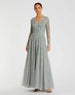Embellished Wrap Over Illusion Long Sleeve A Line Gown