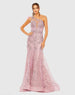 Embody elegance and sophistication in this embroidered applique feathered one shoulder gown. With its stunning one-shoulder design, intricate embroidered applique, and delicate feathers, this gown is the perfect look for any special occasion.