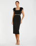 Experience timeless elegance in our Feather Cap Sleeve Pearl Embellished Tea-length Fit Dress. The illusion neckline and feather cap sleeves add a touch of glamour, while the neck and waist rhinestone detailing elevate the overall look. Perfect for any formal occasion, this dress will make you feel confident and sophisticated.
