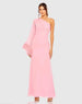 This one shoulder feather gown is a stunning choice for any special occasion. The one shoulder design and ruched detailing provide a flattering fit, while the feather sleeve detail adds a touch of luxury.