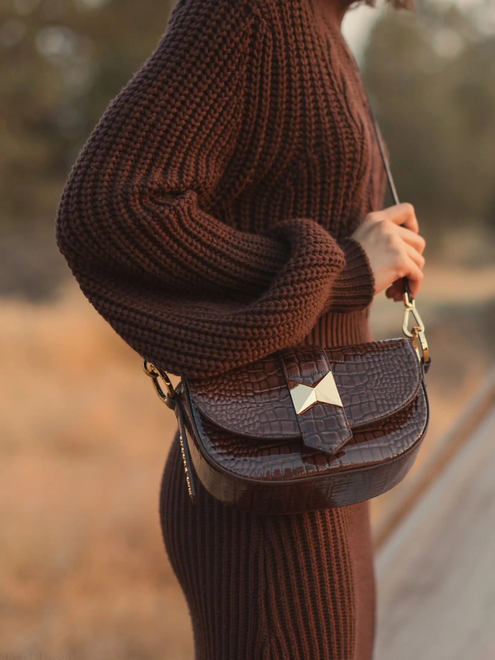 Discover timeless luxury with our Crocodile Leather Saddle Bag, accented by elegant gold hardware. Handcrafted from genuine crocodile leather, this bag embodies sophistication and durability. Perfect for any occasion, it blends classic style with modern flair, offering both functionality and exquisite craftsmanship.