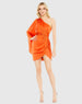 Elevate your style with our One Shoulder Long Sleeve Draped Dress. Crafted from luxurious satin, the faux wrap and ruched details create a flattering silhouette, perfect for any elegant occasion.