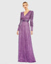 Sequined Wrap Over Bishop Sleeve Gown